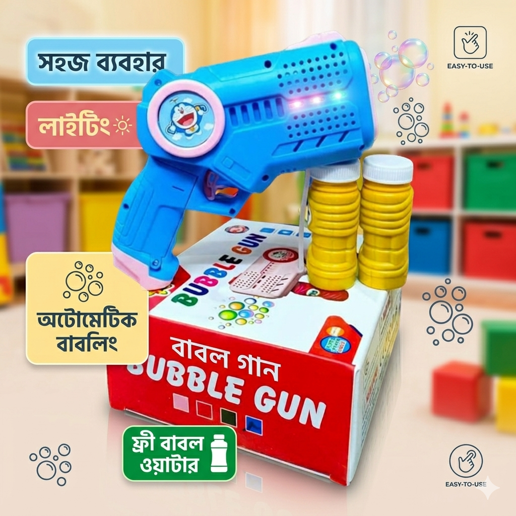 শুধু ট্রিগার চাপলেই এটি একটানা অসংখ্য বাবল তৈরি করে, যা বাচ্চাদের খেলাধুলায় নতুন মজা যোগ করে। জন্মদিন, পার্টি, আউটডোর খেলাধুলা বা যেকোনো আনন্দঘন মুহূর্তে এটি হতে পারে পারফেক্ট সঙ্গী।